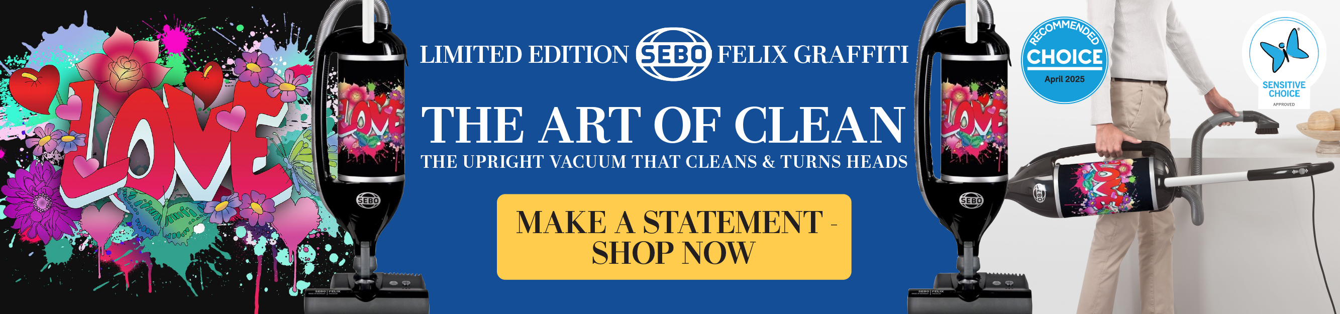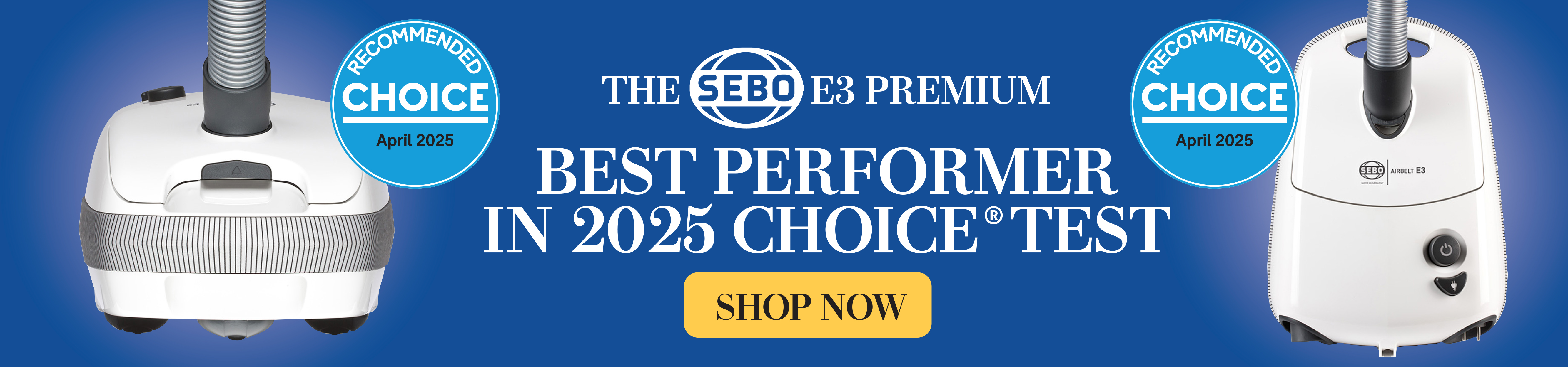 The deep cleaning SEBO brand of domestic vacuum cleaners and barrel vacuum cleaners which are recommended by Carpet Manufacturers, removing maximum debris including pet hair.