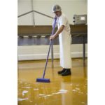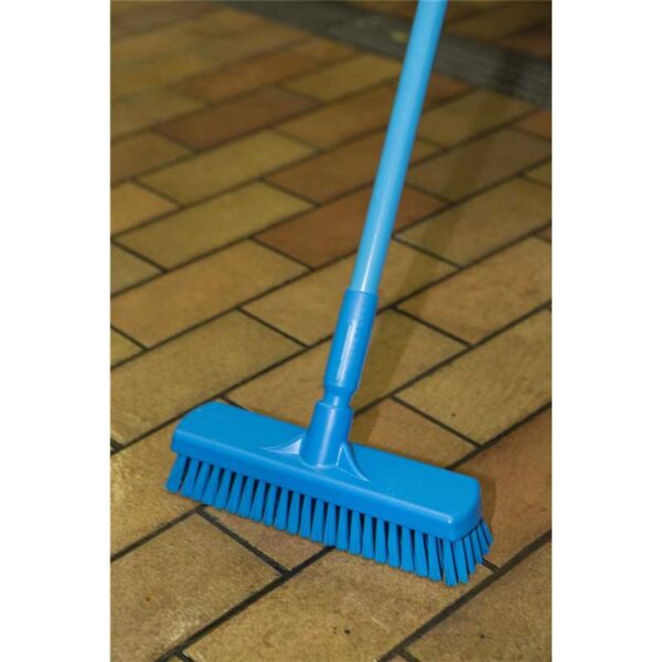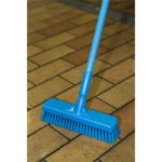 This floor scrubbing broom has firm bristles. The bristle length is perfect for scrubbing all types of floors; epoxy; tiles; cement; etc. It also reaches well into holes and grouting to remove hidden dirt. Can be used with any Nayla colour coded handle.