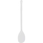 The heat resistant nylon enables the user to stir product while hot – up to 170oC . The heat resistance is applicable to contact with food not metal and should be removed immediately after use. The handle is smooth and gentle on the user’s hand. Examples of use: soup; caramel; etc.