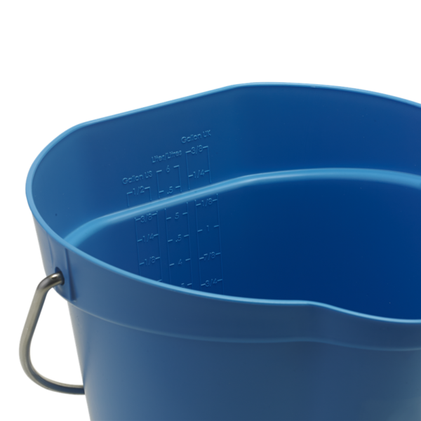 This award winning bucket is ideal for transporting cleaning chemicals as well as hot or cold ingredients. It has a drip-free spout; hand grip that is raised from the base; sturdy stainless steel handle and is calibrated for a variety of measuring units. The flat side prevents spillage and it has its own separate wall bracket; 16200 for storage. The flat side prevents spillage.