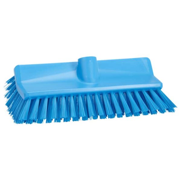 The High-Low brush is particularly suitable for cleaning fillets (junction between floor/wall) and under machines and equipment since the angle of the thread enables you to place the mounted handle parrallel to the floor and thus clean/scrub under the equipment. This brush is also ideal for cleaning drains and gulleys.