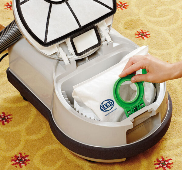 Top-fill, multi-layer bags are an integral part of SEBO’s filtration system because they ensure continuously strong suction as all dirt enters from the top, deposits at the bottom, accumulates upward, and air exits through the sides, which allows unimpeded airflow as they fill to capacity. Sealed when full, so no dust can escape into the air during bag removal and disposal. Recommended for Asthma and Allergy Sufferers.