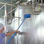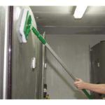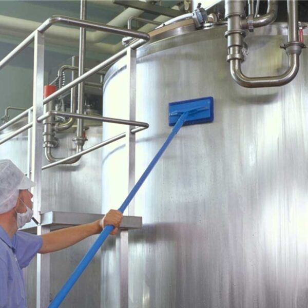 An excellent tool for cleaning walls and tanks. Often used to scrub stubborn dirt e.g. pastry; meat; sticky glucose type ingredients. The swivel neck allows the operator to clean underneath equipment. It is designed to hold a scouring pad of varying roughness. The clip mechanism is stainless steel and is very robust. This mechanism prevents the pad from falling off once heavy with water.